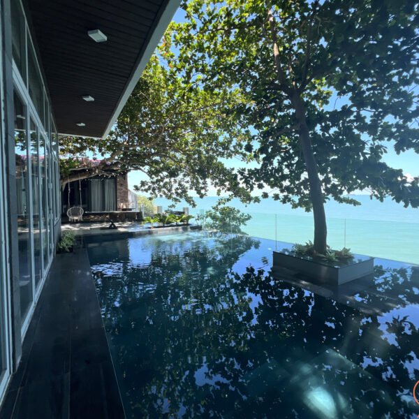 바닷가 바로 앞에 위치한 6룸 빌라로, 오션뷰 수영장과 넓은 정원이 매력 포인트예요.